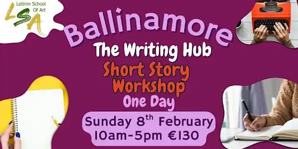 The Writing Hub; One Day Short Story Workshop. Sun 8th Feb ,10am-5pm, Total €130; €30 deposit on booking balance €100 payable on the day.